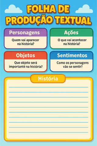 Ele une apoio visual, organização de ideias e estímulos criativos — tudo o que facilita a produção de textos no Fundamental 1.