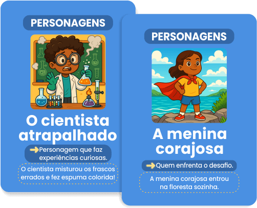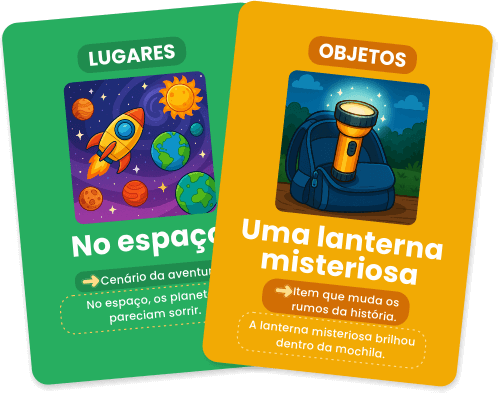 Use para montar histórias, desbloquear a criatividade, revisar estrutura narrativa, trabalhar coerência e coesão ou iniciar produções de forma guiada.